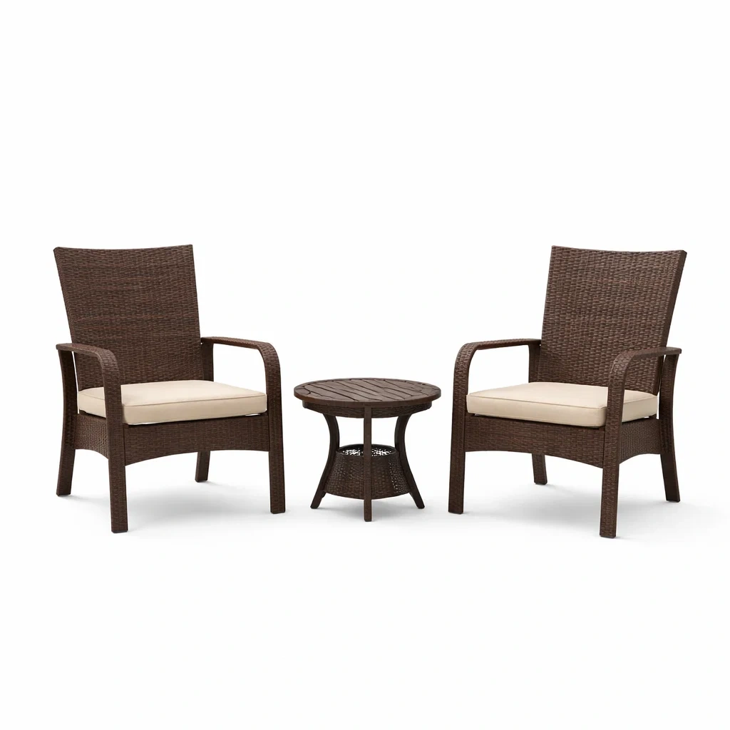 Set da relax piccolo da giardino in rattan marrone con cuscini in poliestere 2 sedie e tavolino